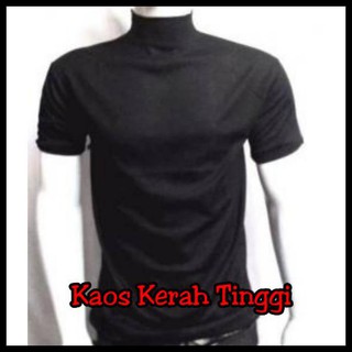 Kaos polos putih kerah tinggi.